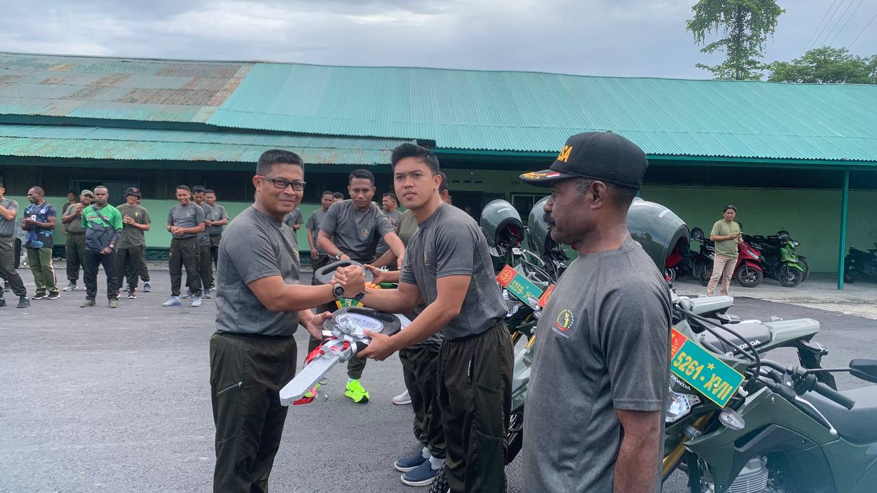 INFORMASIMERAHPUTIH.com | Timika |  Komandan Kodim 1710/Mimika Letkol Inf Dedy Dwi Cahyadi menyerahkan 70 unit sepeda motor jenis trail CRF 150 L bantuan dari Kemenhan RI kepada personel Kodim 1710/Mimika usai pelaksanaan apel pagi yang dilaksanakan secara simbolis, bertempat di depan Aula BMP Makodim 1710/Mimika, Jl. Agimuga Mile 32 Distrik Kuala Kencana, Kab. Mimika, Jumat (24/11/2023).