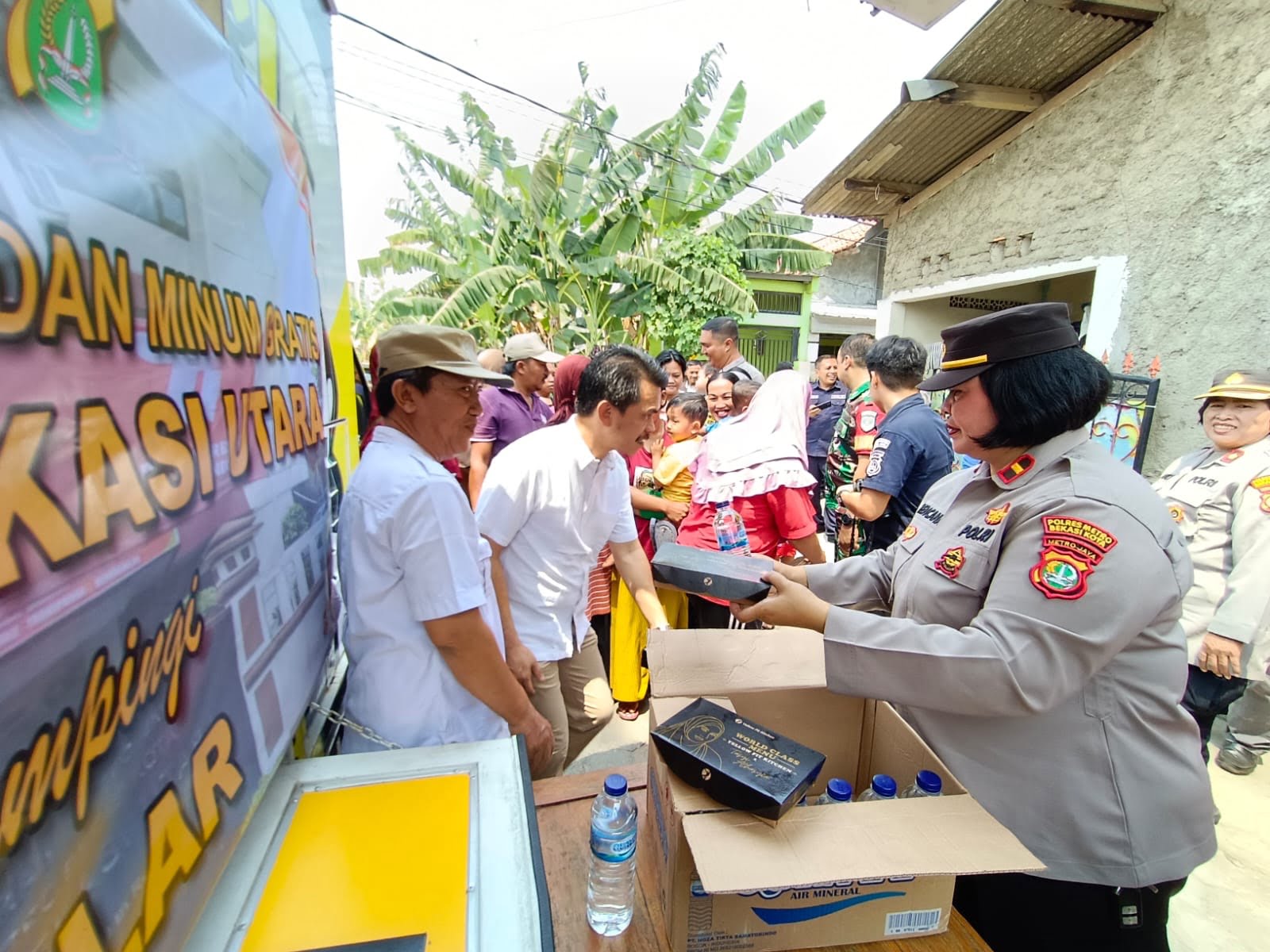 Kapolsek Bekasi Utara Kompol Yuliati, S.Mn bersama jajarannya melaksanakan pembagian makanan dan minuman kepada warga kurang mampu di Slum Area.