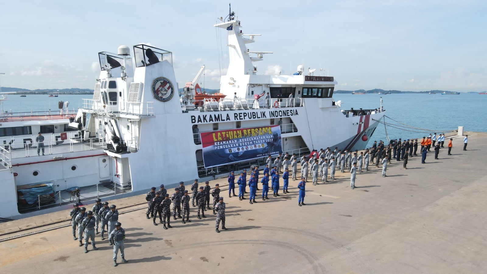 INFORMASIMERAHPUTIH.com | Batam | Kepala Bakamla RI Laksdya TNI Dr. Irvansyah, S.H., M.Tr.Opsla., resmi membuka Latihan Bersama (Latma) Keamanan, Keselamatan, dan Penegakan Hukum (Latma KKPH) di Laut Tahun 2023 bersama Instansi Tekait dan Instansi Teknis di Pelabuhan Batu Ampar, Batam, Kamis (16/11/2023).