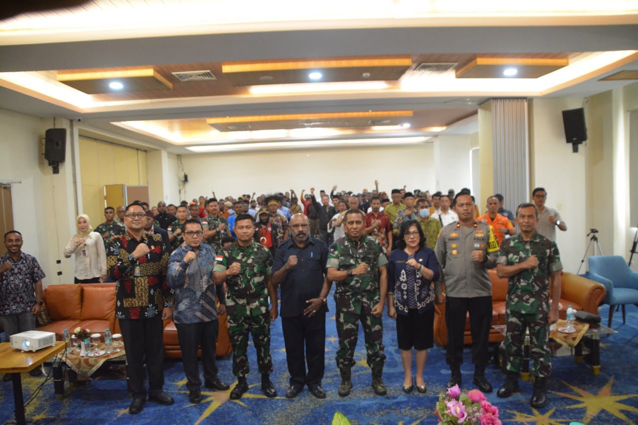 INFORMASIMERAHPUTIH.com | Timika | Bertempat di Hotel Horison Ultima, Jl. Hasanudin, Distrik Mimika Baru, Dandim 1710/Mimika, Letkol Inf Dedy Dwi Cahyadi turut mengikuti kegiatan Binkom Cegah Konflik Sosial, Jumat (15/9/2023). Dalam kegiatan tersebut, Dandim 1710/Mimika memberikan pemaparan tentang wawasan kebangsaan kepada sekitar 225 orang peserta yang terdiri dari berbagai komponen masyarakat Kabupaten Mimika.