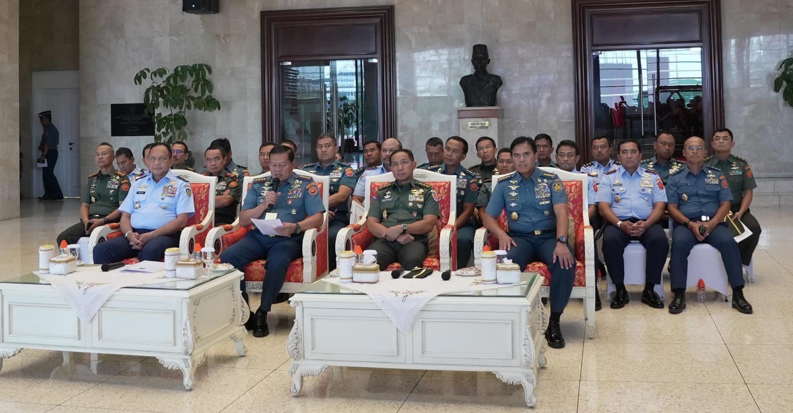INFORMASIMERAHPUTIH.com | Jakarta | Panglima TNI Laksamana TNI Yudo Margono, S.E, M.M. didampingi Kepala Staf Angkatan Darat Jenderal TNI Agus Subiyanto, S.E., M.Si., Kepala Staf Angkatan Laut Laksamana TNI Muhammad Ali, Kepala Staf Angkatan Udara Marsekal TNI Fadjar Prasetyo, S.E., M.P.P., memimpin Kick Off Posko Pengaduan Netralitas TNI pada Pemilu 2024, di Ruang Hening Mabes TNI Cilangkap, Jakarta Timur, Senin (20/11/2023).