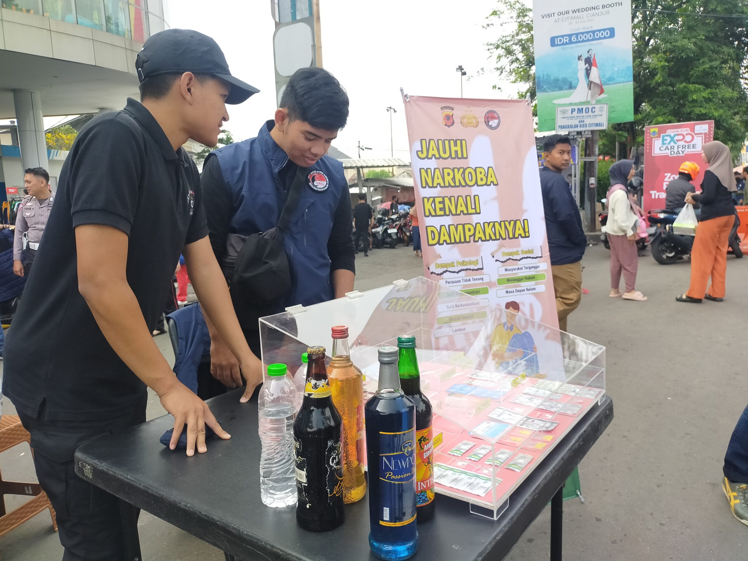 ” Makanya dengan tulisan di bander itu jauhi narkoba kenali dampaknya merukan bentuk himbauan dan sosialisasi pada masyarakat luas yang berkunjung ke car free day ini, “kata Ferry