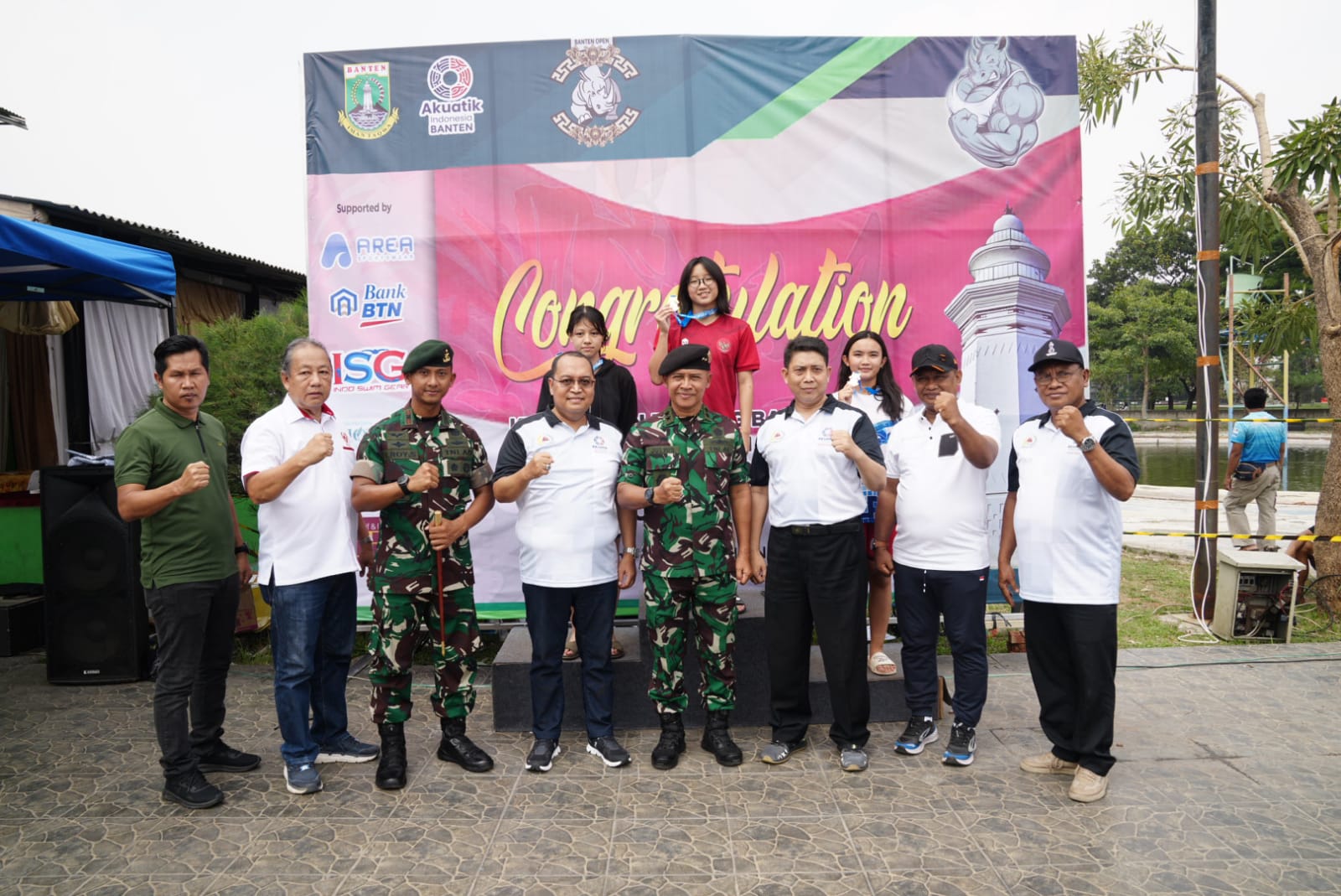 Turut hadir Danyonif 203 Arya Kamuning Mayor Inf Isnanto Roy Saputro, Ketum PRSI Prov. Banten Bapak Agus Sutisna, M.Pd., Ketua KONI Provinsi Banten Bapak Candra Andriawan, Ketua KONI Kota Tangerang Bapak Sudirman, Penasehat Akuatik Bapak Wibisono beserta Istri, Dinas Pora Kota Tangerang Bapak Kaunang, Tim Officer, para Atlet dan undangan. (Red).