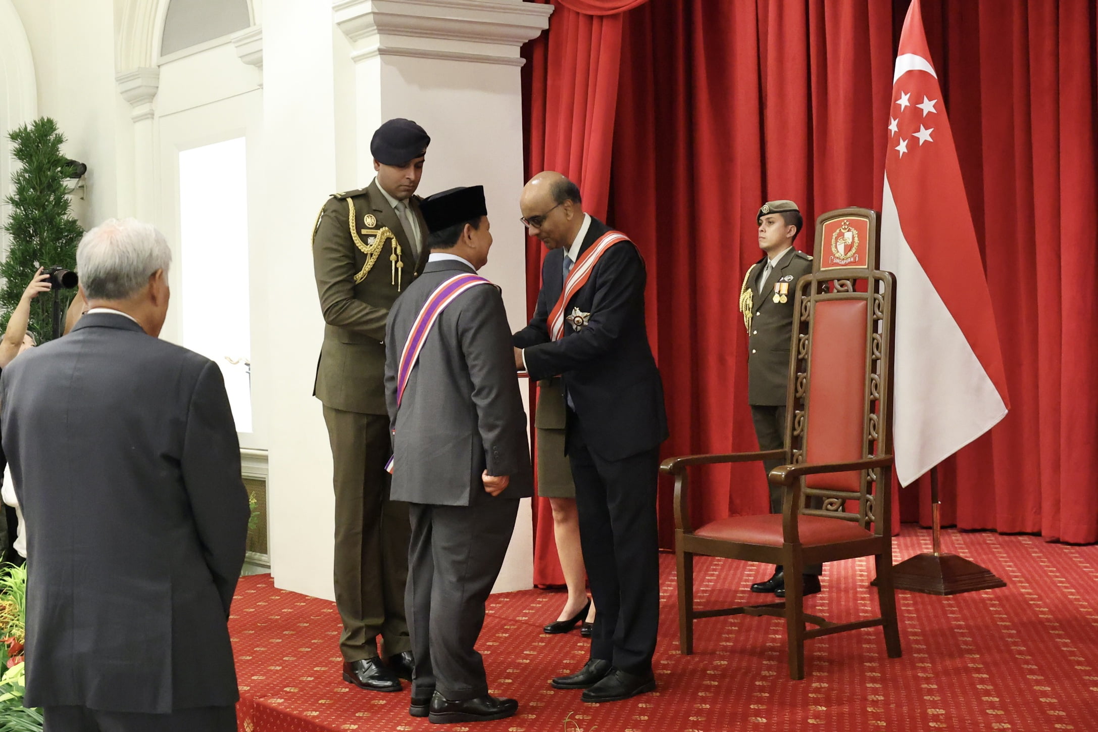 Penganugerahan tersebut diberikan langsung oleh Presiden Singapura, Tharman Sanmugaratnam kepada Prabowo di Istana Kepresidenan Singapura.