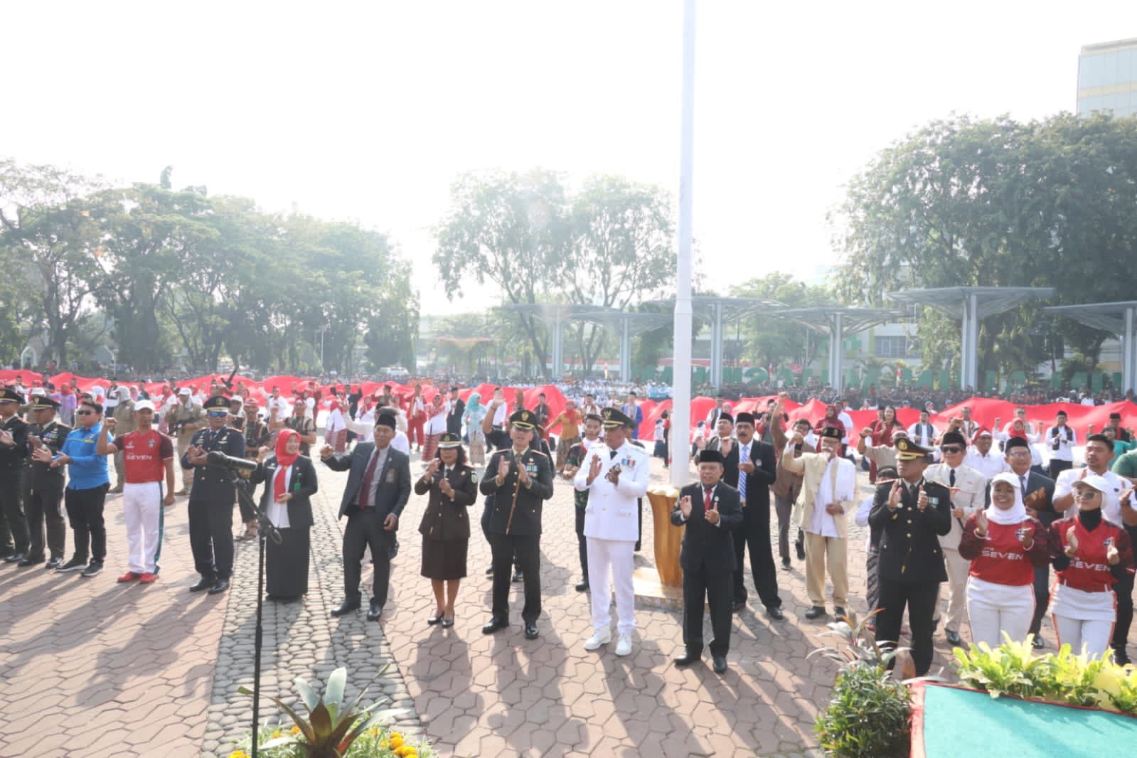 INFORMASIMERAHPUTIH.com | Bekasi | Pemerintah Kota Bekasi menggelar Upacara Peringatan Hari Ulang Tahun (HUT) ke-78 Republik Indonesia di Alun Alun M. Hasibuan Kota Bekasi. Pelaksana Tugas (Plt) Wali Kota Bekasi, Tri Adhianto bersama Forum Koordinasi Pimpinan Daerah Kota Bekasi hadir dalam pelaksanaan upacara tersebut.