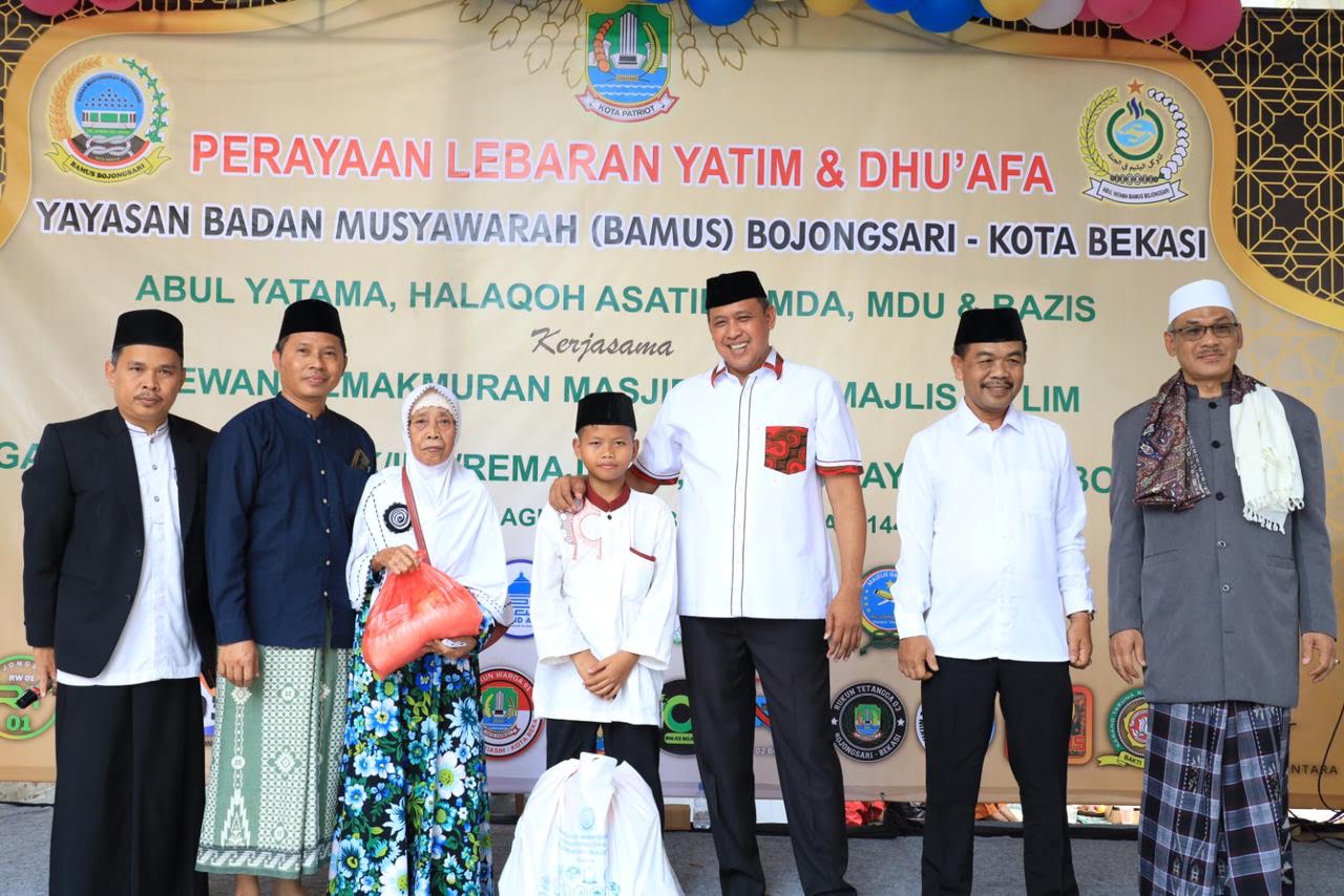 INFORMASIMERAHPUTIH.com | Bekasi | Plt. Wali Kota Bekasi, Tri Adhianto hadiri Lebaran Yatim dan Dhuafa yang digelar oleh Yayasan Badan Musyawarah (BAMUS) Bojongsari. Acara tersebut dikemas dengan pemberian santunan untuk Anak Yatim dan Dhuafa di lingkungan sekitar pada Minggu, (06/08)