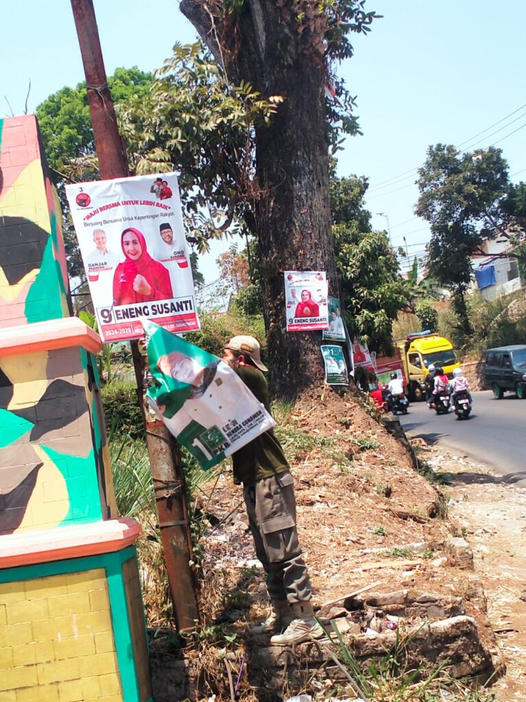 INFORMASIMERAHPUTIH.com | Cianjur | Satuan Polisi Pamong Praja (Satpol PP) Pemkab Cianjur terus melakukan penertiban Alat Peraga Kampanye (APK) yang dipasang ditempat-tempat bukan keperuntukannya.