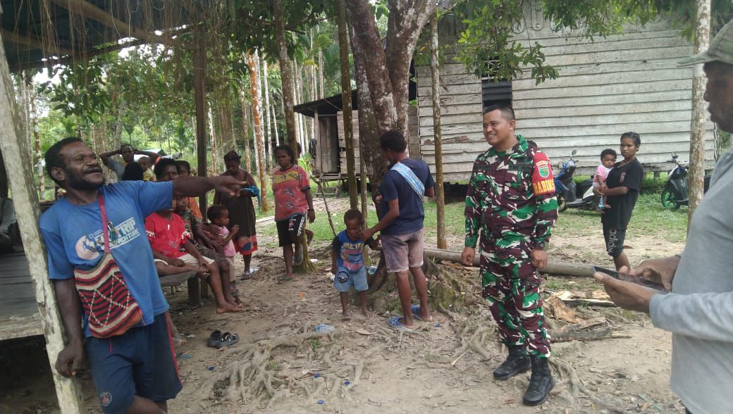 INFORMASIMERAHPUTIH.com | Timika | Menjaga hubungan yang lebih baik dan sebagai sarana silaturahmi agar lebih dekat dan akrab dengan warga, Babinsa Kampung Kadun Jaya anggota Koramil 1710-02/Timika Sertu Aslan Samad melaksanakan Komsos dengan warga binaan. Kali ini Sertu Aslan mendatangi keluarga bapak Tarius Lokbere yang berlokasi di Kampung Kadun Jaya, Distrik Wania, Kab. Mimika, Selasa (21/11/2023).
