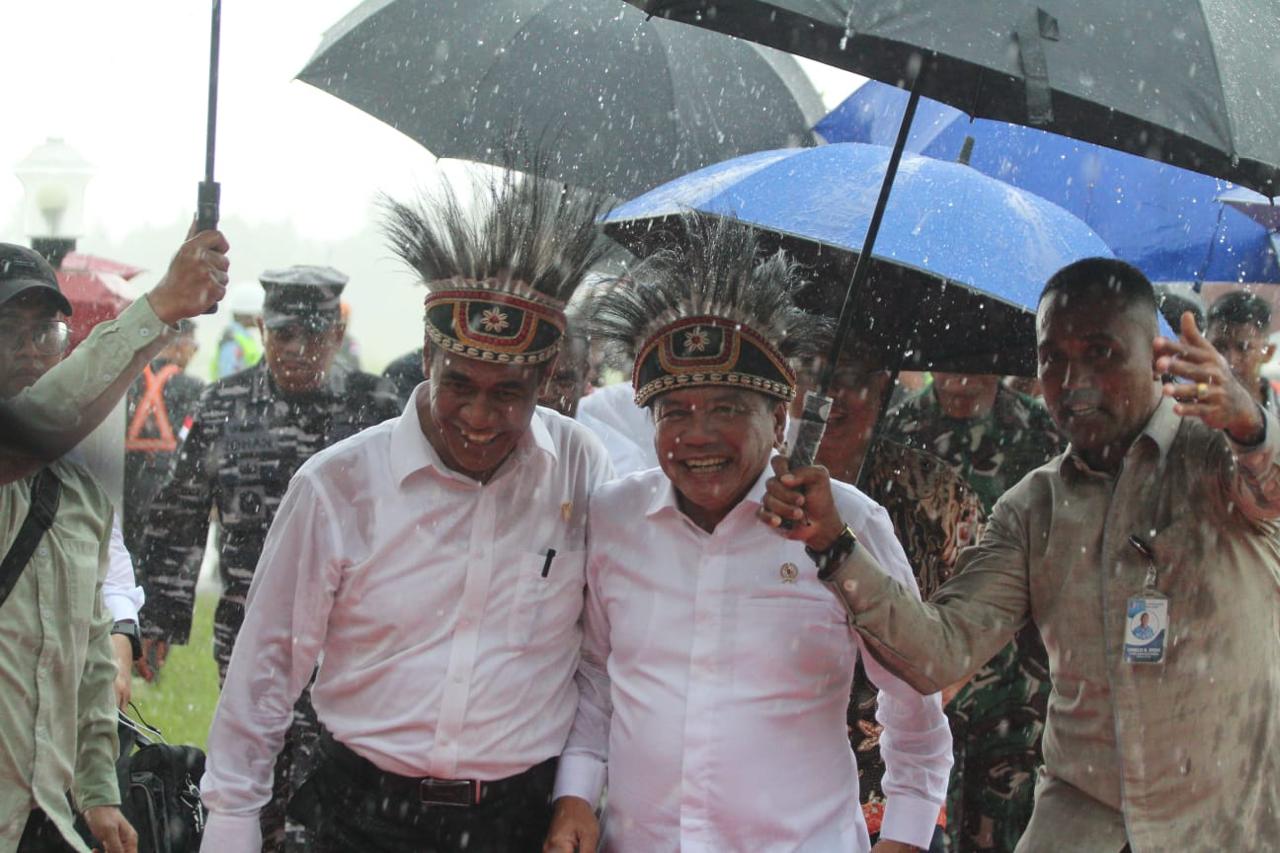 Setibanya di Bandara Mopah Merauke, Wamenhan disambut oleh Menteri Pertanian Andi Amran Sulaiman, Bupati Merauke Romanus Mbaraka, dan Pangdam XVII/Cendrawasih Mayjen TNI Izak Pangemanan. Pada kesempatan itu, Menteri Pertanian memakaikan topi adat Papua kepada Wakil Menteri Pertahanan M. Herindra sebagai simbolis diterimanya di Tanah Papua.